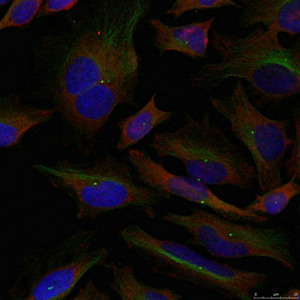 Immunofluorescence staining of methanol-fixed Hela cells using ADD1(Ab-726) Antibody.