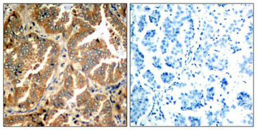 Immunohistochemical analysis of paraffin-embedded human lung carcinoma tissue using ADD1(Ab-726) Antibody(left) or the same antibody preincubated with blocking peptide(right).