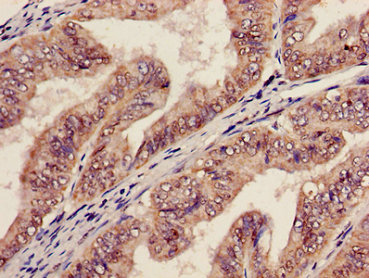 Immunohistochemistry of paraffin-embedded human endometrial cancer using CSB-PA001453LA01HU at dilution of 1:100