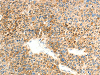 • The image on the left is immunohistochemistry of paraffin-embedded Human liver cancer tissue using CSB-PA996514(AGRP Antibody) at dilution 1/20, on the right is treated with synthetic peptide. (Original magnification: ×200)
