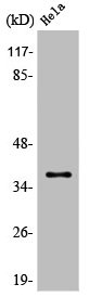 • Western Blot analysis of HeLa cells using Annexin I Polyclonal Antibody