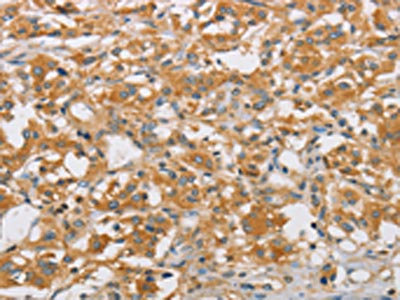 • The image on the left is immunohistochemistry of paraffin-embedded Human gastic cancer tissue using CSB-PA409894(ARHGEF7 Antibody) at dilution 1/40, on the right is treated with fusion protein. (Original magnification: ×200)