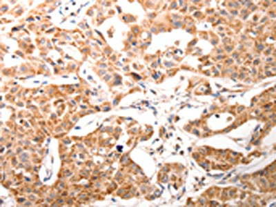 The image on the left is immunohistochemistry of paraffin-embedded Human ovarian cancer tissue using CSB-PA277795(BGLAP Antibody) at dilution 1/60, on the right is treated with synthetic peptide. (Original magnification: ×200)