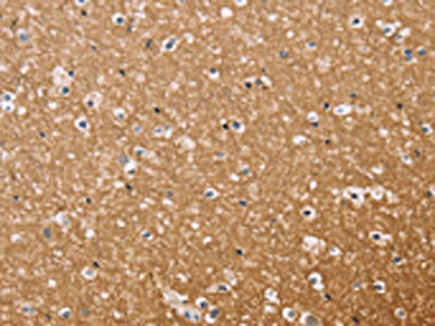 • The image on the left is immunohistochemistry of paraffin-embedded Human brain tissue using CSB-PA135204(BGLAP Antibody) at dilution 1/40, on the right is treated with synthetic peptide. (Original magnification: ×200)