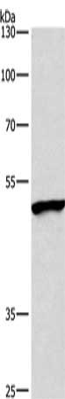 • Gel: 8%SDS-PAGE, Lysate: 40 μg, Lane: A549 cells, Primary antibody: CSB-PA055744(BMP15 Antibody) at dilution 1/400, Secondary antibody: Goat anti rabbit IgG at 1/8000 dilution, Exposure time: 40 seconds