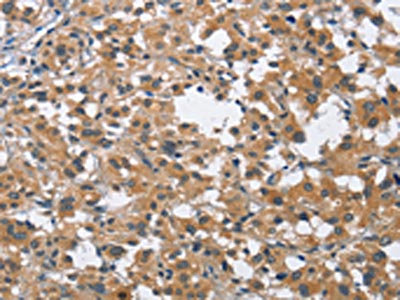 The image on the left is immunohistochemistry of paraffin-embedded Human thyroid cancer tissue using CSB-PA941013(BUB1 Antibody) at dilution 1/60, on the right is treated with fusion protein. (Original magnification: ×200)