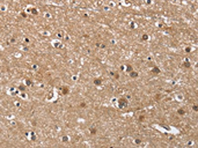 The image on the left is immunohistochemistry of paraffin-embedded Human brain tissue using CSB-PA941013(BUB1 Antibody) at dilution 1/60, on the right is treated with fusion protein. (Original magnification: ×200)