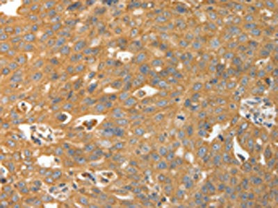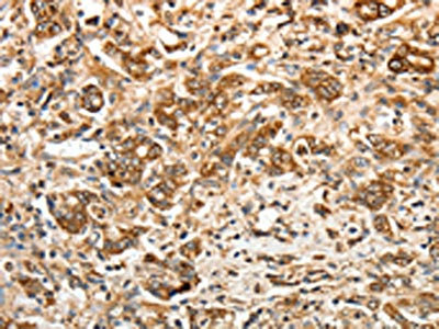 • The image on the left is immunohistochemistry of paraffin-embedded Human gastric cancer tissue using CSB-PA963019(CALR Antibody) at dilution 1/30, on the right is treated with fusion protein. (Original magnification: ×200)
