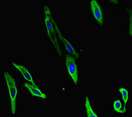 • Immunofluorescent analysis of Hela cells using CSB-PA771462LA01HU at dilution of 1:100 and Alexa Fluor 488-congugated AffiniPure Goat Anti-Rabbit IgG(H+L)