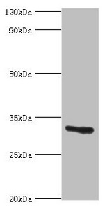 All lanes: Caspase-6 antibody at 8μg/ml + Hela whole cell lysate