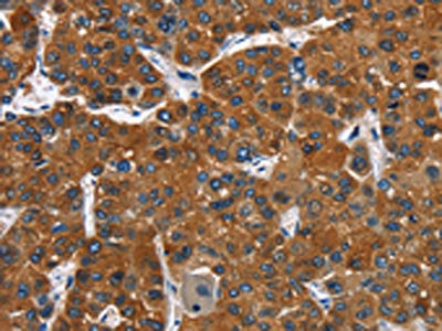 • The image on the left is immunohistochemistry of paraffin-embedded Human liver cancer tissue using CSB-PA087474(CATSPER3 Antibody) at dilution 1/60, on the right is treated with fusion protein. (Original magnification: ×200)