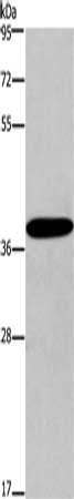 Gel: 8%SDS-PAGE, Lysate: 40 μg, Lane: Mouse skin tissue, Primary antibody: CSB-PA171419(CCR2 Antibody) at dilution 1/450, Secondary antibody: Goat anti rabbit IgG at 1/8000 dilution, Exposure time: 5 minutes