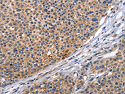 The image on the left is immunohistochemistry of paraffin-embedded Human liver cancer tissue using CSB-PA867465(CD5L Antibody) at dilution 1/30, on the right is treated with synthetic peptide. (Original magnification: ×200)