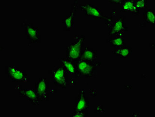 • Immunofluorescent analysis of Hela cells using CSB-PA004999LA01HU at dilution of 1:100 and Alexa Fluor 488-congugated AffiniPure Goat Anti-Rabbit IgG(H+L)