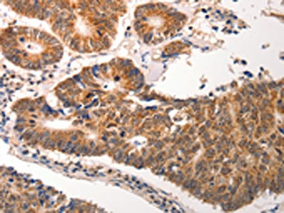 • The image on the left is immunohistochemistry of paraffin-embedded Human colon cancer tissue using CSB-PA870444(CDC6 Antibody) at dilution 1/25, on the right is treated with synthetic peptide. (Original magnification: ×200)