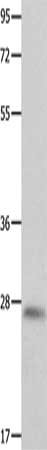 Gel: 10%SDS-PAGE, Lysate: 40 μg, Lane: Lncap cells, Primary antibody: CSB-PA869915(CDKN1B Antibody) at dilution 1/300, Secondary antibody: Goat anti rabbit IgG at 1/8000 dilution, Exposure time: 2 minutes