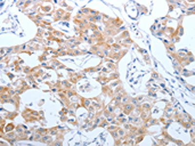 • The image on the left is immunohistochemistry of paraffin-embedded Human lung cancer tissue using CSB-PA097333(CEACAM5 Antibody) at dilution 1/40, on the right is treated with synthetic peptide. (Original magnification: ×200)