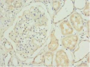 • Immunohistochemistry of paraffin-embedded human kidney tissue using CSB-PA874858ESR2HU at dilution of 1:100