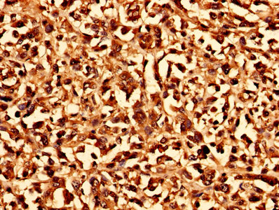 Immunohistochemistry analysis of human melanoma using CSB-PA846622LA01HU at dilution of 1:100