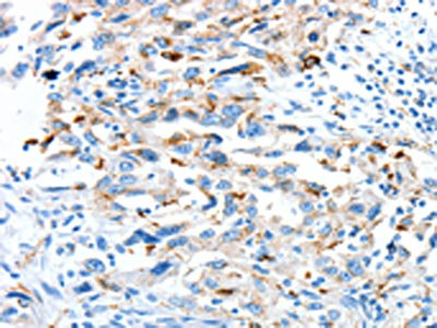 The image on the left is immunohistochemistry of paraffin-embedded Human esophagus cancer tissue using CSB-PA017010(CLPTM1L Antibody) at dilution 1/60, on the right is treated with synthetic peptide. (Original magnification: ×200)