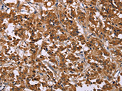 • The image on the left is immunohistochemistry of paraffin-embedded Human thyroid cancer tissue using CSB-PA281322(CMTM6 Antibody) at dilution 1/30, on the right is treated with synthetic peptide. (Original magnification: ×200)
