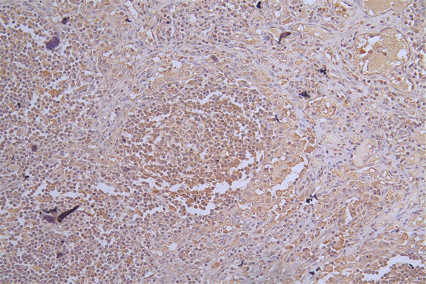 • Immunohistochemistry of paraffin-embedded human lymph node tissue using CSB-PA822164ESR1HU at dilution of 1:100
