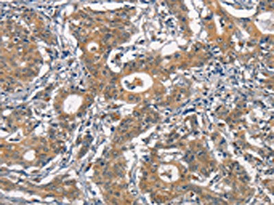 The image on the left is immunohistochemistry of paraffin-embedded Human gastic cancer tissue using CSB-PA758098(CR2 Antibody) at dilution 1/30, on the right is treated with synthetic peptide. (Original magnification: ×200)