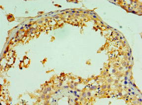 Immunohistochemistry of paraffin-embedded human testis tissue using CSB-PA006194ESR2HU at dilution of 1:100