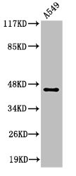 • Western Blot analysis of A549 cells using Cleaved-MASP-1 HC (R448) Polyclonal Antibody