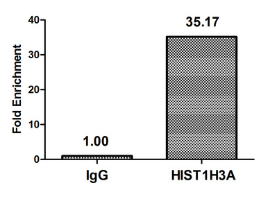 Chromatin Immunoprecipitation Hela (4*106, treated with 30mM sodium crotonylate for 4h) were treated with Micrococcal Nuclease, sonicated, and immunoprecipitated with 5µg anti-HIST1H3A (CSB-PA010418OA04crHU) or a control normal rabbit IgG. The resulting ChIP DNA was quantified using real-time PCR with primers against the β-Globin promoter.