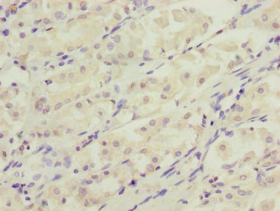 Immunohistochemistry of paraffin-embedded human gastric cancer using CSB-PA006589LA01HU at dilution of 1:100