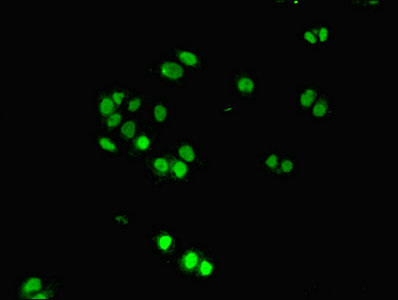 Immunofluorescent analysis of PC-3 cells using CSB-PA006589LA01HU at dilution of 1:100 and Alexa Fluor 488-congugated AffiniPure Goat Anti-Rabbit IgG(H+L)