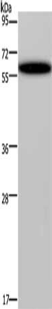 Gel: 8%SDS-PAGE, Lysate: 40 μg, Lane: Hela cells, Primary antibody: CSB-PA938110(DDX19B Antibody) at dilution 1/400, Secondary antibody: Goat anti rabbit IgG at 1/8000 dilution, Exposure time: 40 seconds