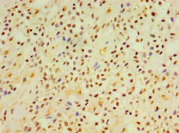 Immunohistochemistry of paraffin-embedded human testis tissue using CSB-PA006835ESR1HU at dilution of 1:100