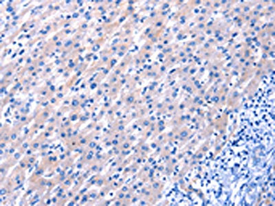 • The image on the left is immunohistochemistry of paraffin-embedded Human liver cancer tissue using CSB-PA846755(EGF Antibody) at dilution 1/25, on the right is treated with fusion protein. (Original magnification: ×200)
