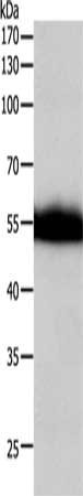 • Gel: 10%SDS-PAGE, Lysate: 40 μg, Lane: A549 cells, Primary antibody: CSB-PA829543(F10 Antibody) at dilution 1/400, Secondary antibody: Goat anti rabbit IgG at 1/8000 dilution, Exposure time: 10 minutes