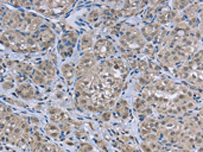 The image on the left is immunohistochemistry of paraffin-embedded Human thyroid cancer tissue using CSB-PA568889(FAR2 Antibody) at dilution 1/50, on the right is treated with fusion protein. (Original magnification: ×200)