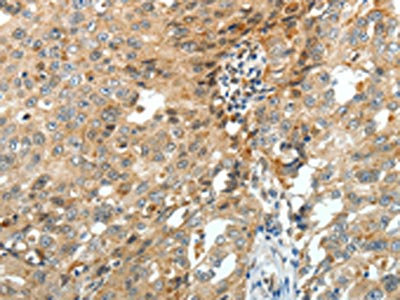 The image on the left is immunohistochemistry of paraffin-embedded Human ovarian cancer tissue using CSB-PA129862(FZD3 Antibody) at dilution 1/20, on the right is treated with synthetic peptide. (Original magnification: ×200)