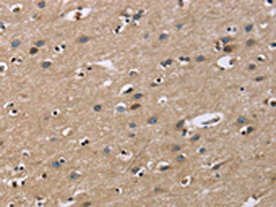 • The image on the left is immunohistochemistry of paraffin-embedded Human brain tissue using CSB-PA078640(GAB1 Antibody) at dilution 1/40, on the right is treated with fusion protein. (Original magnification: ×200)