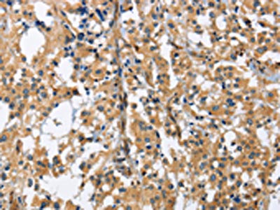 • The image on the left is immunohistochemistry of paraffin-embedded Human thyroid cancer tissue using CSB-PA078640(GAB1 Antibody) at dilution 1/40, on the right is treated with fusion protein. (Original magnification: ×200)
