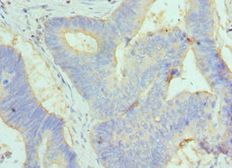 Immunohistochemistry of paraffin-embedded human colon cancer using CSB-PA009306ESR1HU at dilution of 1:100