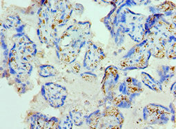 Immunohistochemistry of paraffin-embedded human placenta tissue using CSB-PA009306ESR1HU at dilution of 1:100