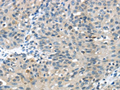 • The image on the left is immunohistochemistry of paraffin-embedded Human prostate cancer tissue using CSB-PA025580(GLP2R Antibody) at dilution 1/30, on the right is treated with fusion protein. (Original magnification: ×200)