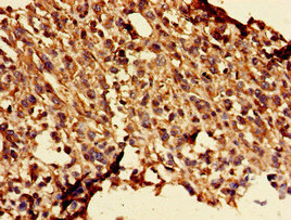 Immunohistochemistry of paraffin-embedded human melanoma using CSB-PA009516LA01HU at dilution of 1:100