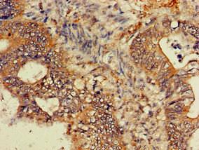 Immunohistochemistry of paraffin-embedded human colon cancer using CSB-PA862056LA01HU at dilution of 1:100