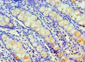 Immunohistochemistry of paraffin-embedded human colon tissue using CSB-PA010137ESR2HU at dilution of 1:100