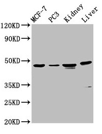 Positive WB detected in: MCF-7 whole cell lysate, PC-3 whole cell lysate, Rat kidney tissue, Mouse liver tissue