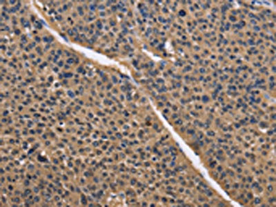 The image on the left is immunohistochemistry of paraffin-embedded Human liver cancer tissue using CSB-PA826954(IDH1 Antibody) at dilution 1/50, on the right is treated with fusion protein. (Original magnification: ×200)
