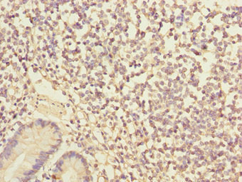 Immunohistochemistry of paraffin-embedded human small intestine tissue using CSB-PA383678ESR2HU at dilution of 1:100