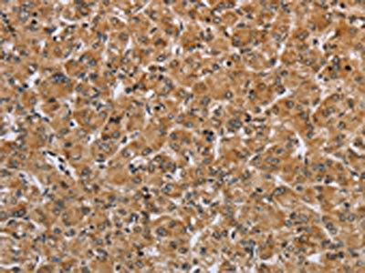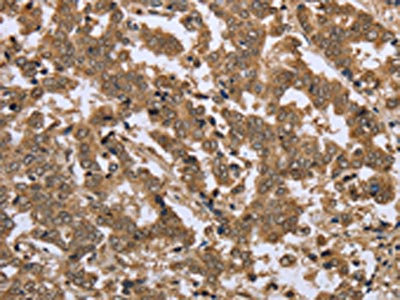 • The image on the left is immunohistochemistry of paraffin-embedded Human liver cancer tissue using CSB-PA987228(IKBKE Antibody) at dilution 1/25, on the right is treated with fusion protein. (Original magnification: ×200)